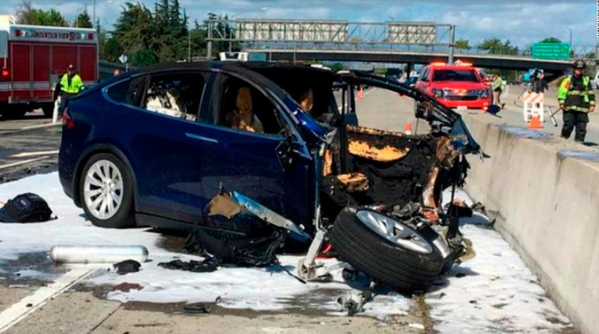 In this Friday March 23, 2018 photo provided by KTVU, emergency personnel work a the scene where a Tesla electric SUV crashed into a barrier on U.S. Highway 101 in Mountain View, Calif. The National Transportation Safety Board has sent two Continue reading